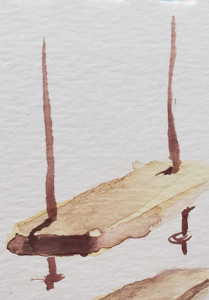 Swing Study. Swing Study. I only used two colours in this picture. I always start with the lighter colour first (as you can see as the base of the seat – the yellow-ish brown). I let the first layer dry before I apply the darker brown so the colours don’t bleed into each other. I want that distinct border that makes the shading pop out. Otherwise it’ll all blend together. If you find yourself in trouble by having your colours bleeding for whatever reason, don’t panic. Simply dab (don’t rub!) the spot where there is an excess of paint or water with a dry cloth or paper towel. If it’s in a tricky place, dab at it with a q-tip. You can even add a bit of water to the place you’re trying to fix if you need to remove a dark pigment. To get that dark brown even darker for the shadowy bits, I simply dabbed my brush with minimal water in the paint and lightly pressed it over the area I want to be more pigmented.