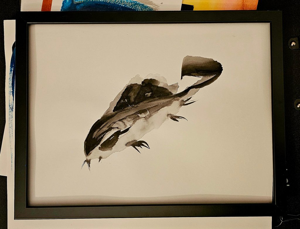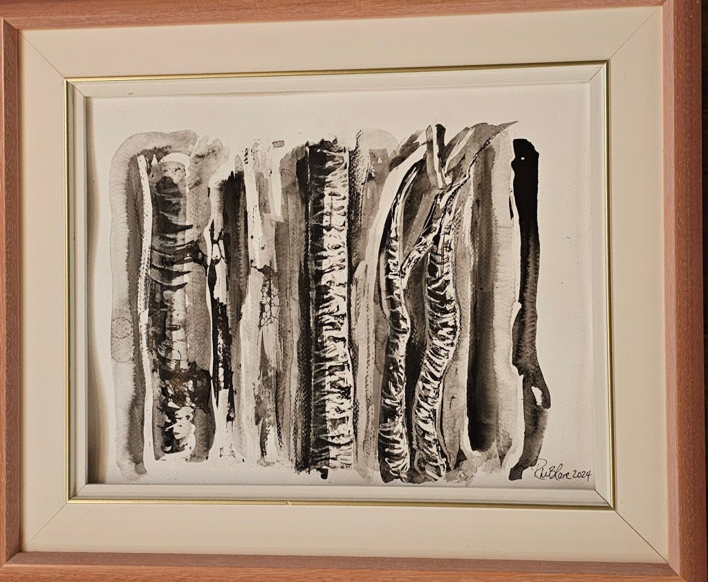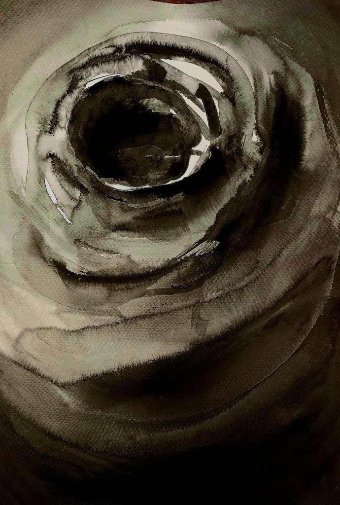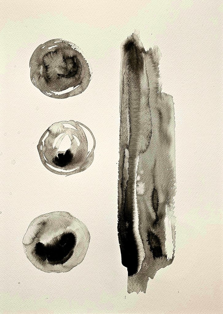 I’ve used it across different surfaces—watercolour paper and mixed media paper in particular. Both respond differently to the ink’s character, but one thing remains constant: the rich, deep tone fades gently as it dries, settling into a more muted presence than when first applied. It teaches you to work not only with intention, but with acceptance. What you lay down may shift—ink settles where it chooses.