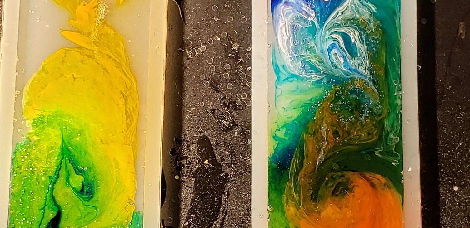 You’ll need the same list of preparations as previously mentioned above, plus that of the resin. To keep it simple, prepare your resin first and add the ink as desired as the second step. I found that if I added the ink while the resin was still very fresh, the shape that I was aiming for shifted and changed more than what I wished for. Note to future self – wait for the resin to set a bit longer. Also, I found that in the absence of a blowtorch (see resin tips), adding drops of pure rubbing alcohol to the surface of the resin made any bubbles disappear! Go figure!