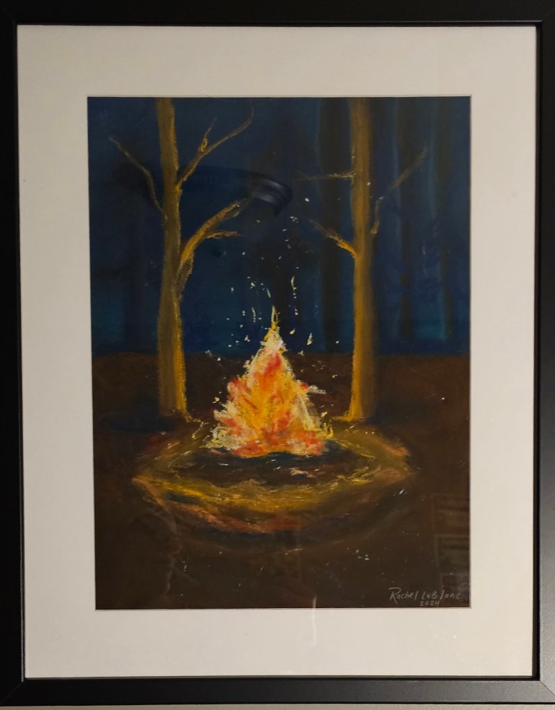 This winter scene, titled Éclat Hivernal, was the regional winner in the 2024 Christmas card category. Created on 5 x 7″ Yupo paper using generic acrylic markers, this piece was all about layering and light.