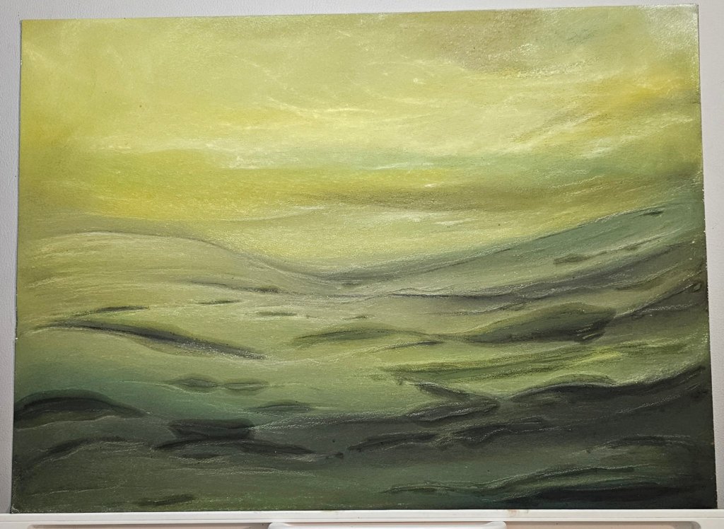 There was no plan going in—just a color palette and a need to follow the flow of each stroke. The surface took the pigment effortlessly, making this one of those pieces where the medium seemed to cooperate completely.