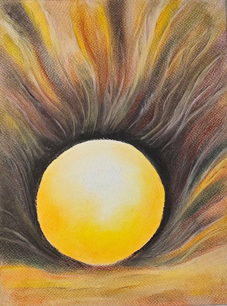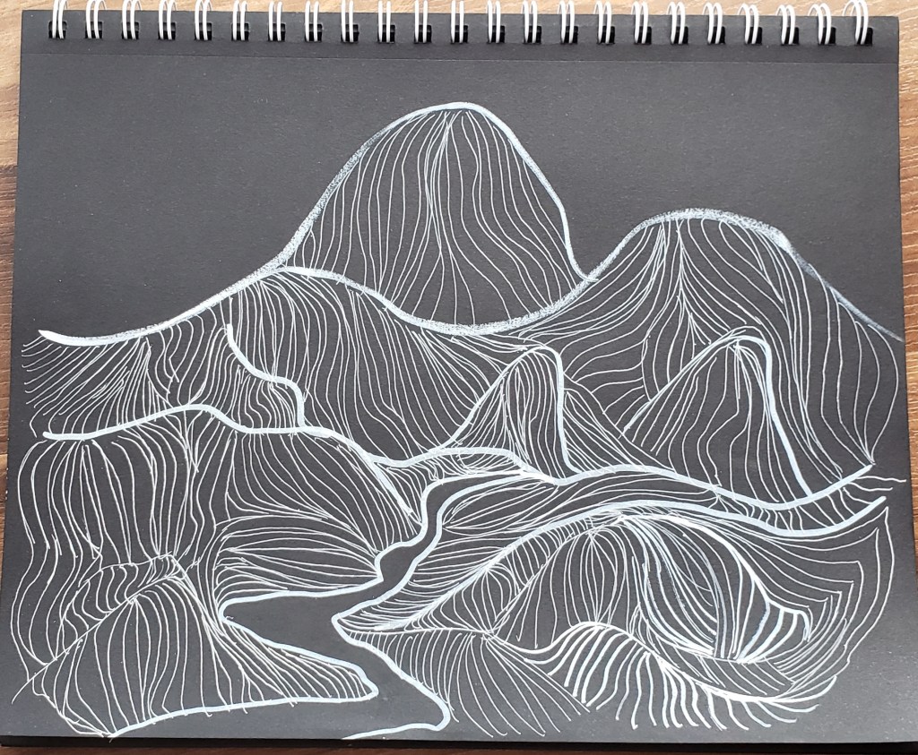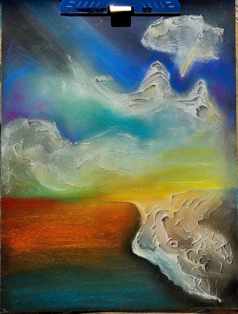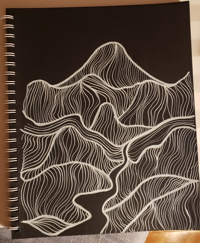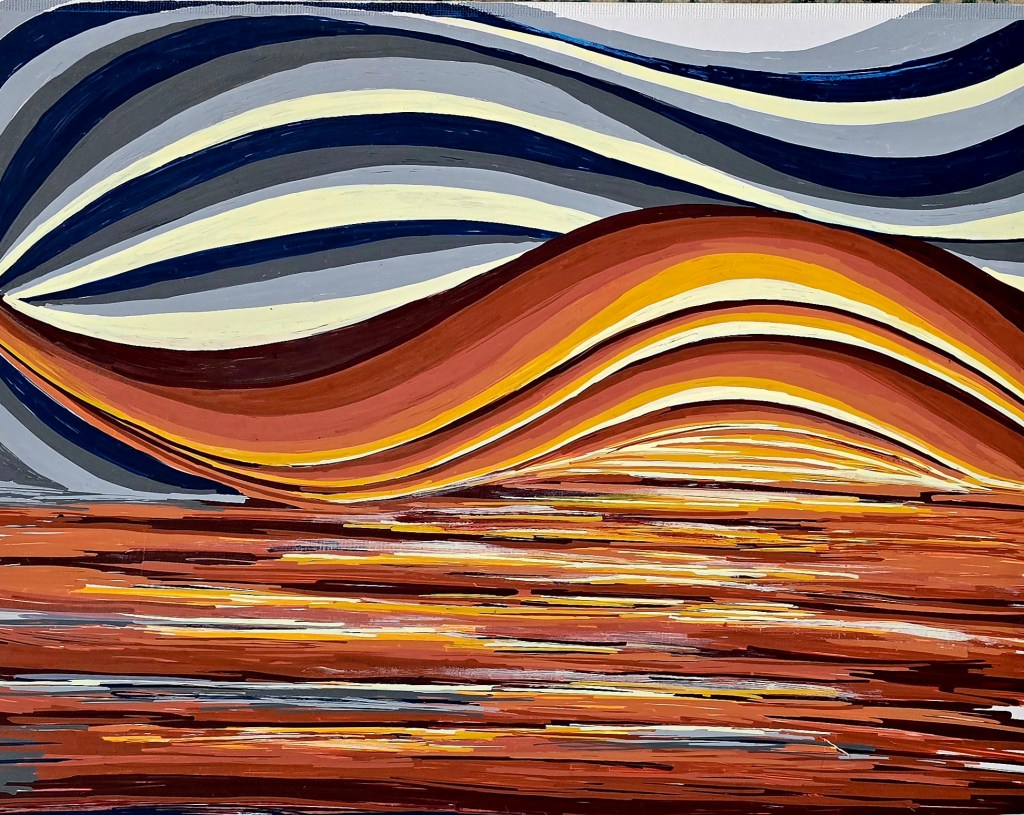 Layer by layer, the lines evolved into a rhythm that hints at landscape, light, and motion all at once. The warm tones in the lower half mimic reflections or terrain, while the sweeping curves above suggest a stylized sky in movement.