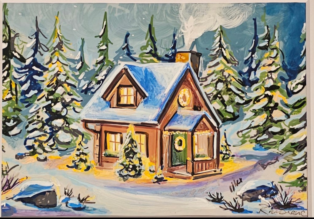 It’s a cozy, glowing tribute to winter—inviting, peaceful, and lit from within.