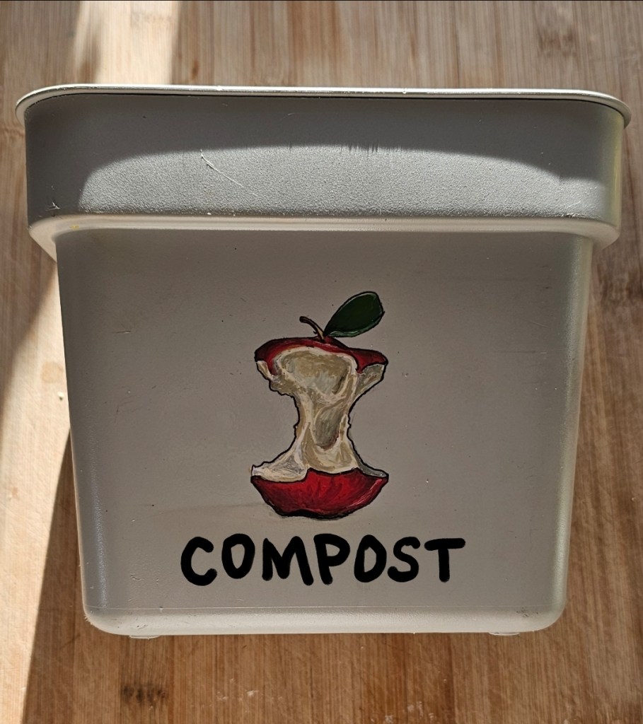 Compost Bin Here’s an example of using the paint markers on a plastic surface. I love transforming everyday house items into something a little more special. Since I’ll be handling the bin often and washing it when it gets dirty, I made sure to seal the design with a clear spray. Here, I used high gloss spray from Rustoleum. I have about 4 coats of spray on it. It’s been over 2 years since I’ve made this, and it’s still in perfect condition!